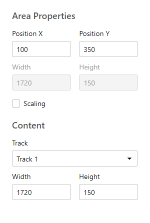 The Track field allows you to choose the track displayed in the area. The drop-down list includes tracks that have been created in the editing interface. When a track is selected, the size of the area adapts to the size of the track.