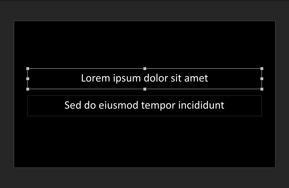 The areas appear in the main view of the display configuration interface. This view shows the content that will appear on the display during projection. The display boundaries are represented by a rectangle with a black background. The area boundaries are shown as gray rectangles.