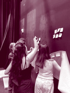 Une installation interactive post-représentation est un dispositif d’implication citoyenne, c’est-à-dire une manière créative d’inviter le public à poursuivre sa réflexion après une représentation. Dans le foyer, un espace participatif est aménagé où les spectateur·rice·s sont appelé·e·s à réagir aux thèmes du spectacle, à partager leurs idées ou à laisser une trace de leur passage.