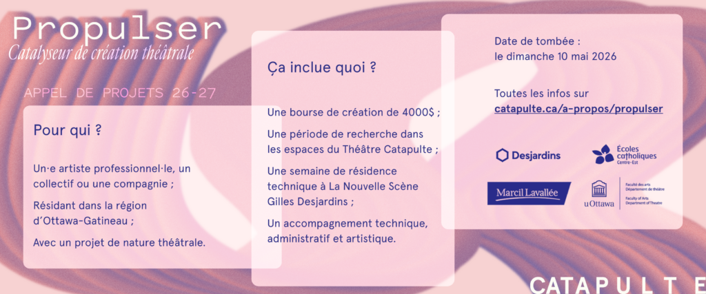 Le Théâtre Catapulte lance la 3ᵉ édition de sa résidence PROPULSER.